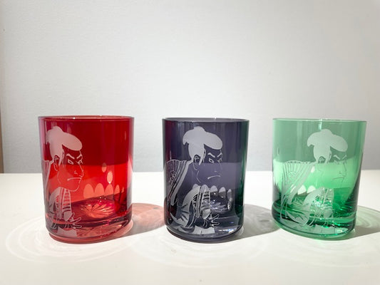 繊細な菊繋ぎ切子と大胆なカッティングが印象的な煌きシリーズ切子を楽しみ、色のコントラストを楽しみながら使うことのできる手仕事ならではの作品です