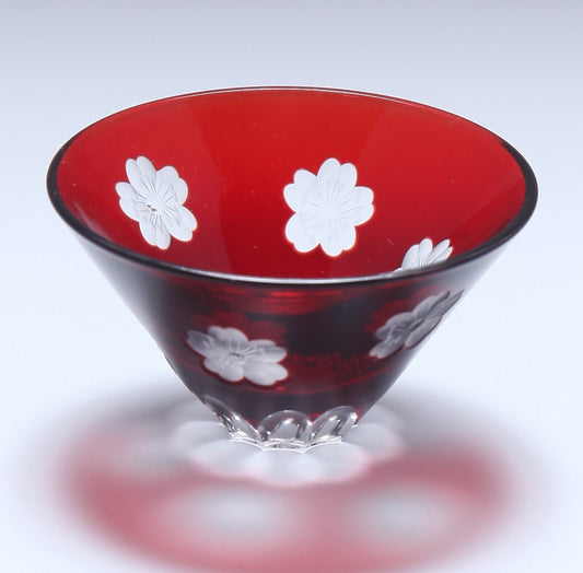 Nakakin粋彩切子 ぐい呑 逆さ富士 『桜咲く』
