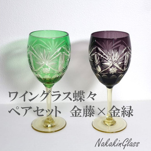 Nakakin粋彩切子 ワイングラス蝶々 ペアセット