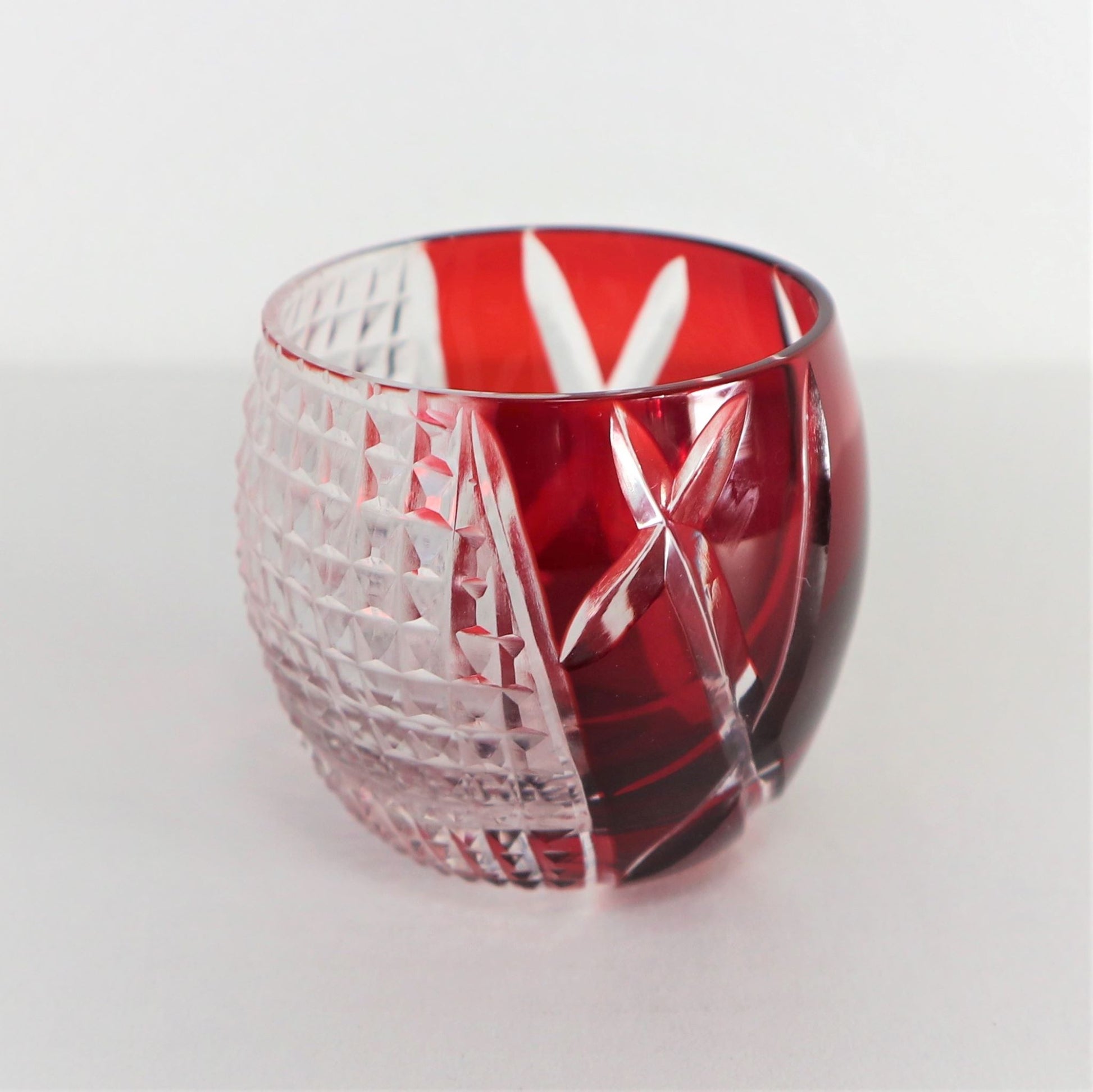 This sake cup expresses Edomae sushi, one of Tokyo's representative gourmet foods, by arranging vibrantly colored Edo glass and one of the traditional Edo Kiriko patterns, "Nanako fish roe." The traditional fish roe pattern is applied in three-dimensional lines from the side to the bottom of the rice bowl, and the characteristics of each ingredient are also expressed in the Kiriko.